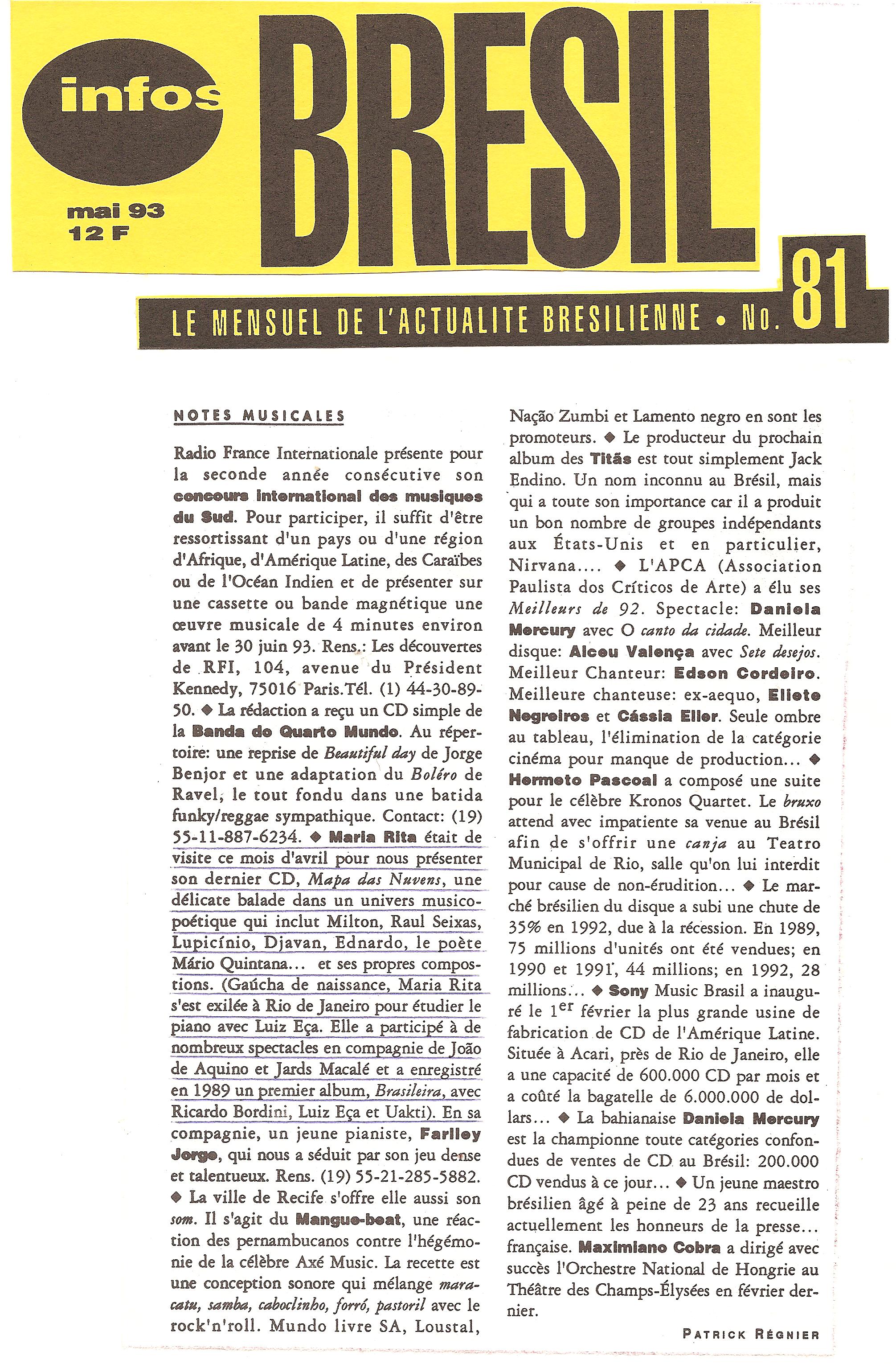 May/1993 - Infos Bresil - Patrick Régnier